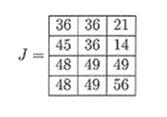 위의 그림에서 각각의 중앙값은 36, 36, 21이 된다. 이 값은 필터링된 이미지 J의 첫 행과 같다.