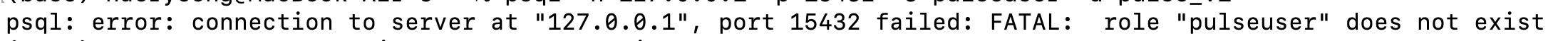 분명 처음에 세팅할 때는 Docker로 PostgreSQL 컨테이너를 띄운 뒤 pulseuser라는 사용자도 잘 생성되었다. 실제로 개발 중에도 아무 문제 없이 쿼리를 날릴 수 있었다.