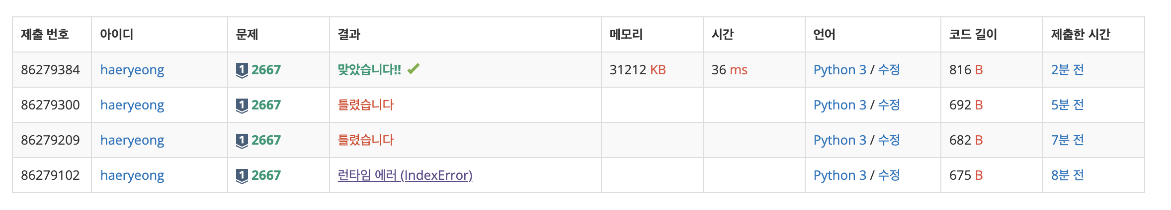 -1 인덱스를 쓰는 생각을 왜 못했을까..? 머리 제대로 안 쓰다가 겨우 풀었다.
