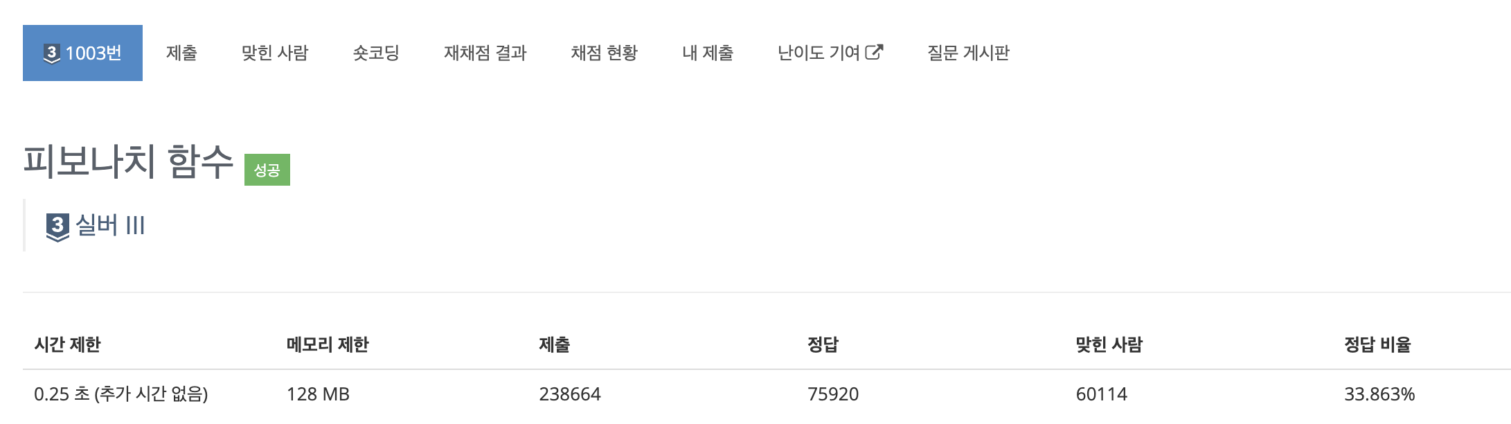 다음 소스는 N번째 피보나치 수를 구하는 C++ 함수이다.